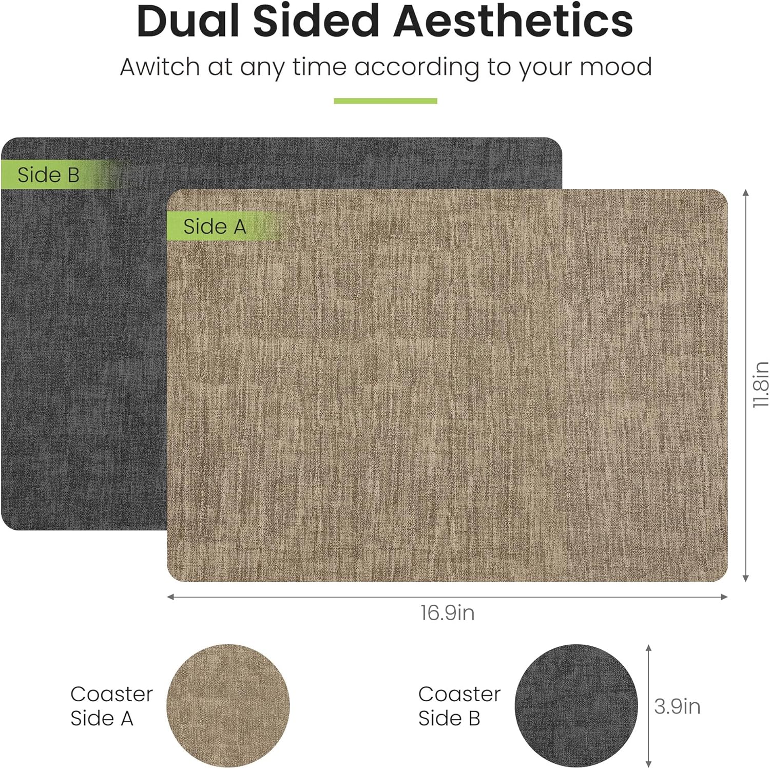 - COST-EFFECTIVE LEATHER PLACEMATS: Our faux leather placemats are made of high quality faux leather, which ensures superior quality and long-lasting durability. Designed with different colours on both sides, it is equivalent to having two different placemats, our placemats are reversible, so you can switch between the two colours at will depending on the occasion or mood. It also comes with a combination of coasters to protect the cups while providing a better dining experience for the diner