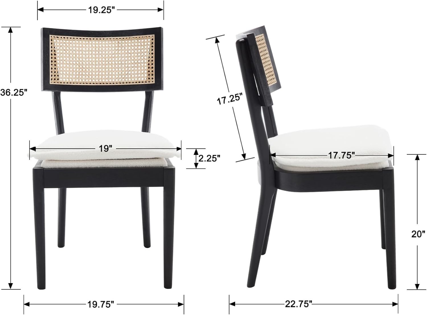 Rattan Dining Chairs Set Of 6 , Mid Century Modern Black Wooden Cane Back Chairs with Removable Sherpa Cushion , Retro Farmhouse Upholstered Kitchen & Dining Room Chairs for Restaurant Living Room