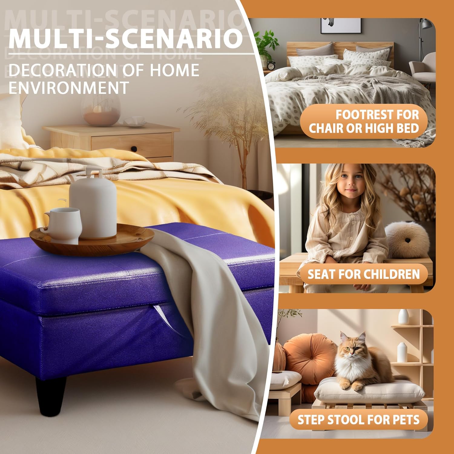 - MULTIFUNCTIONAL OTTOMAN: This ottoman is a perfect fit for multiple spaces, whether it’s your bedroom, living room, entryway, or hallway. It offers versatile use as an entryway bench, footrest, coffee table, or extra seating, making it a stylish and practical addition to any home. Ideal for small spaces, this ottoman enhances both functionality and décor.
