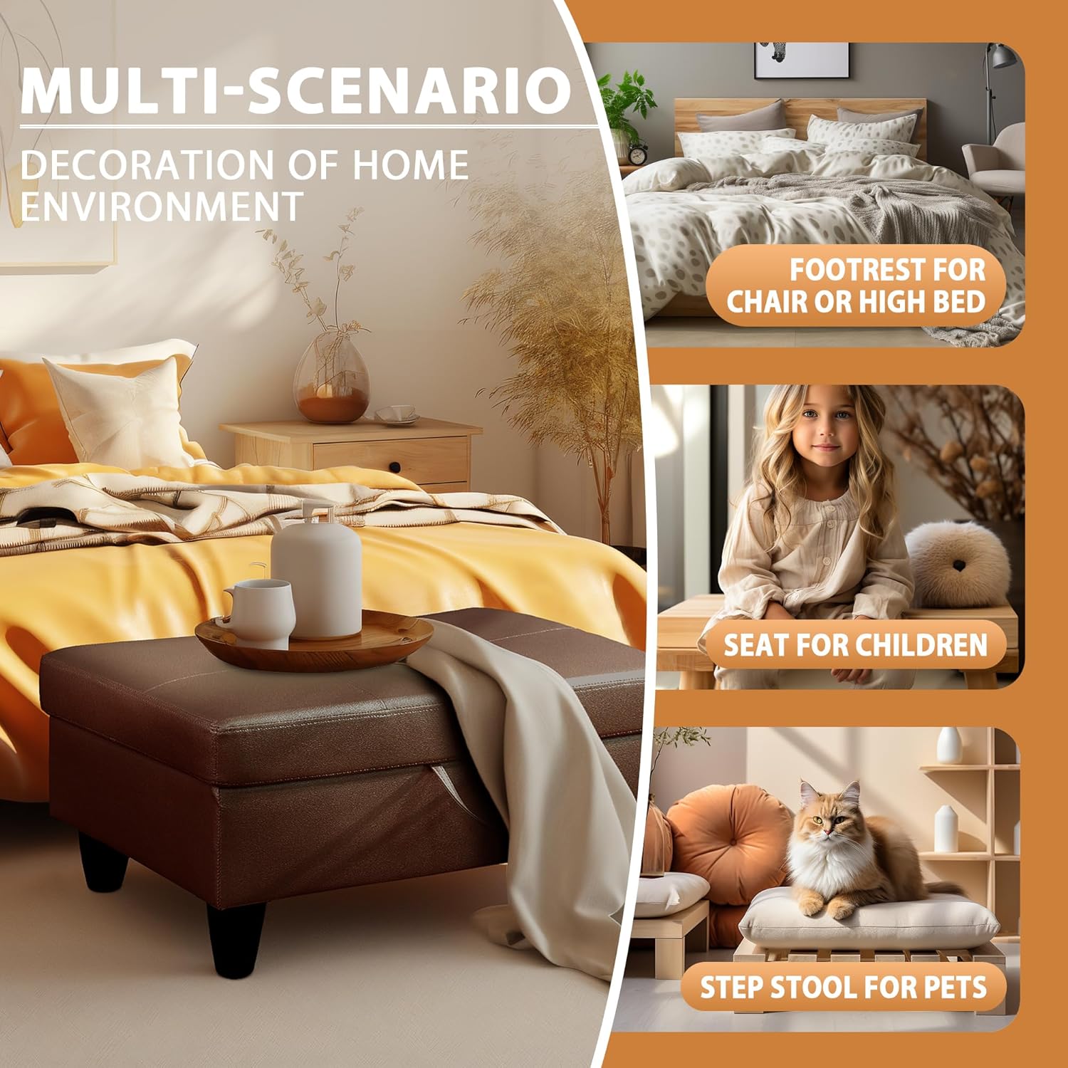 - OTTOMAN BENCH: This versatile storage ottoman doubles as a comfortable bench, perfect for entryways, living rooms, or bedrooms. Designed to blend style with functionality, it provides both extra seating and hidden storage, making it a practical and stylish solution for any space.