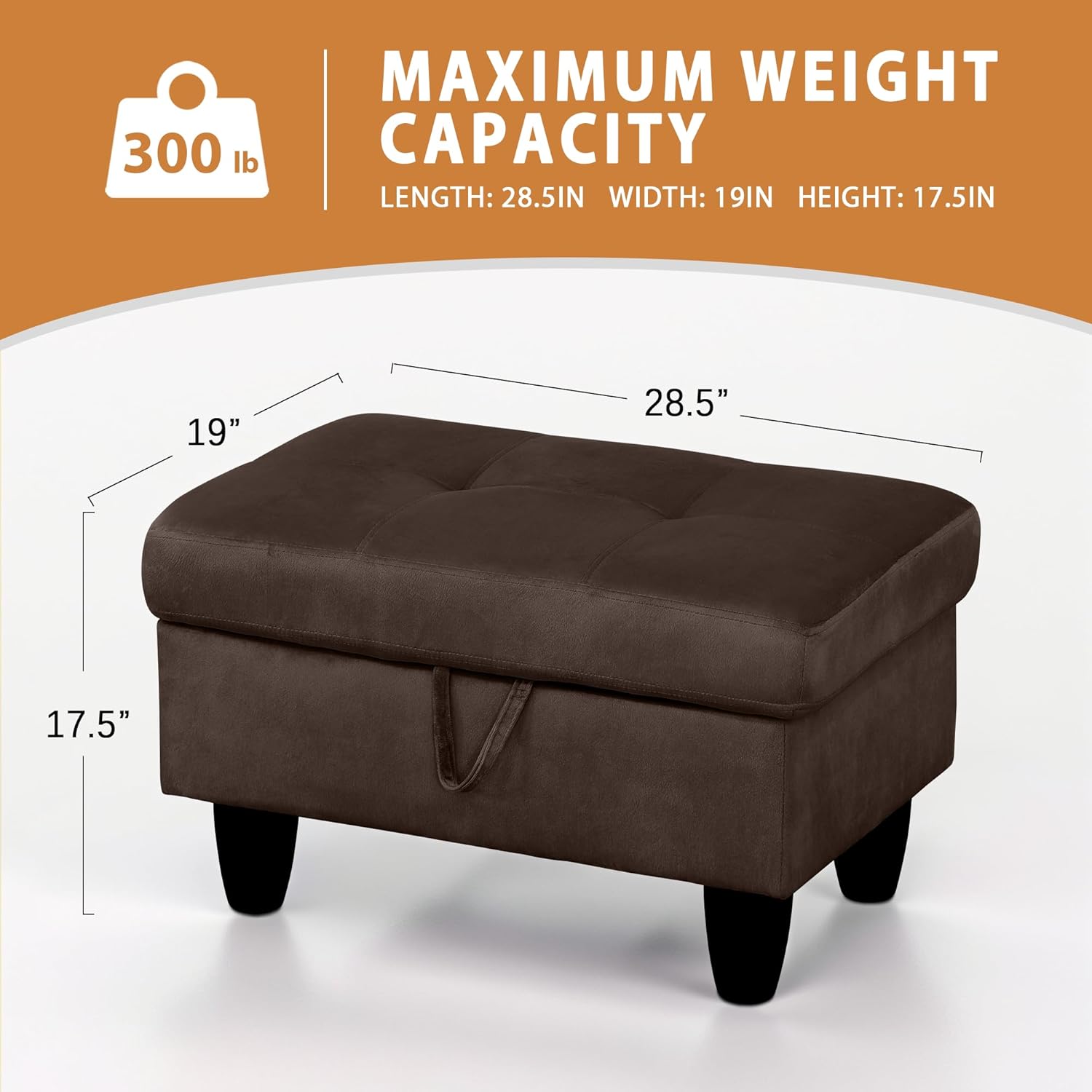 - SIZE & CAPACITY: Measuring 28.5" L x 19" W x 17.5" H, this storage ottoman is crafted to integrate smoothly into any room. With a weight capacity of up to 300 lbs, it provides both a stylish touch and a durable, dependable option for seating or storage in your home.