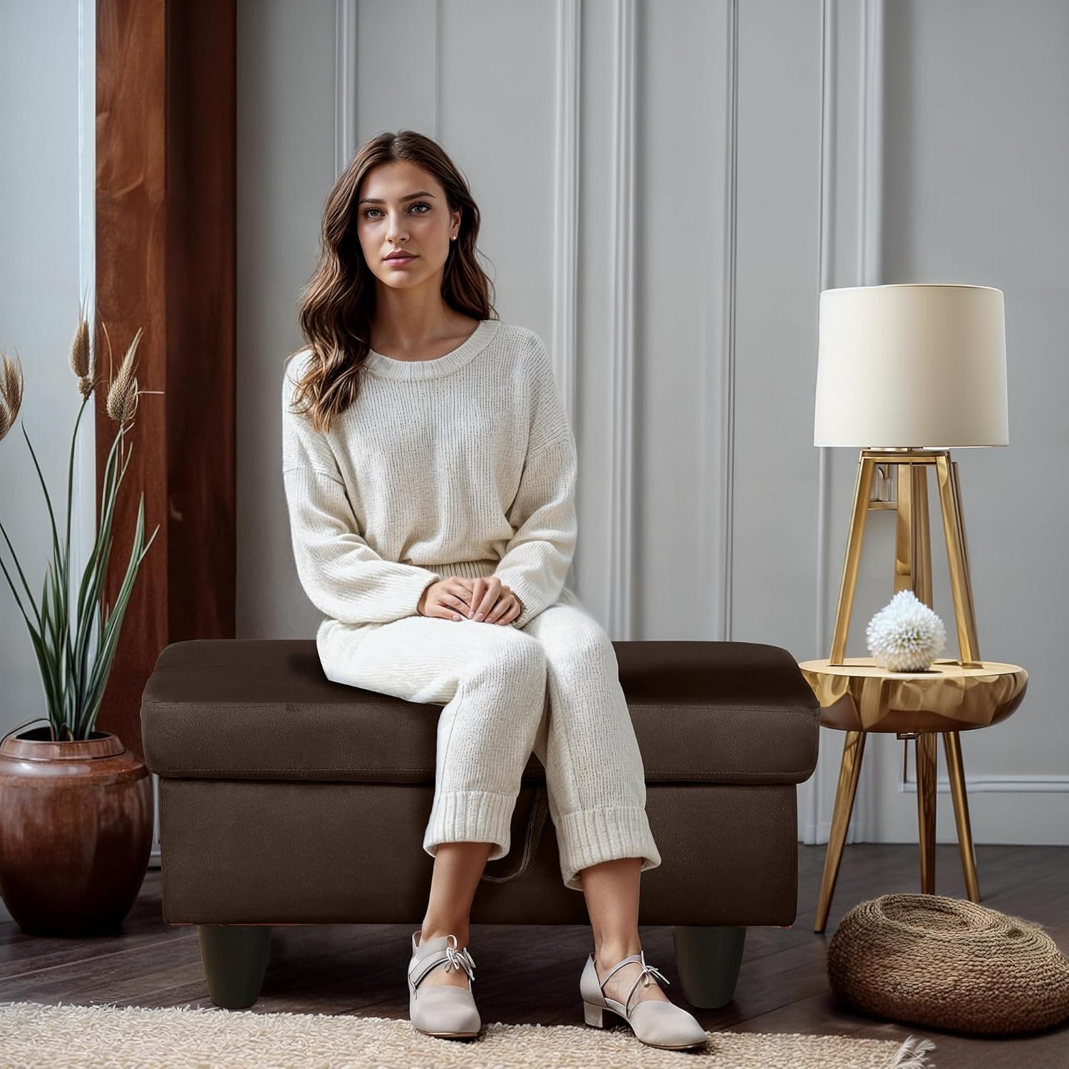 - BENCH OTTOMAN: This adaptable storage ottoman functions as a comfortable bench, perfect for entryways, living rooms, and bedrooms. Blending style with practicality, it offers both seating and storage in one stylish piece. Sit down and enjoy the ideal mix of comfort and convenience this bench ottoman provides.