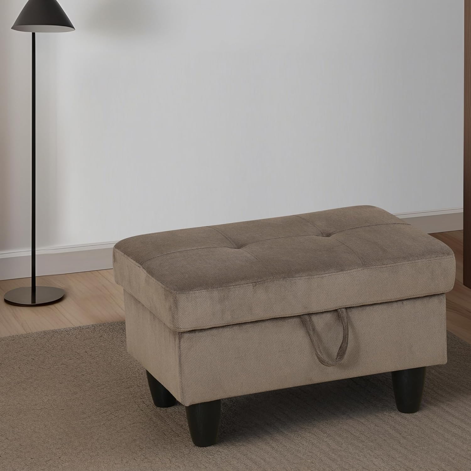 - HIGH-QUALITY MATERIALS: Built with a sturdy solid wood frame, this ottoman offers exceptional durability. Its soft flannel surface provides comfort and a smooth texture, making it ideal for seating. The cushioned lid adds an extra touch of comfort, enhancing the overall seating experience.