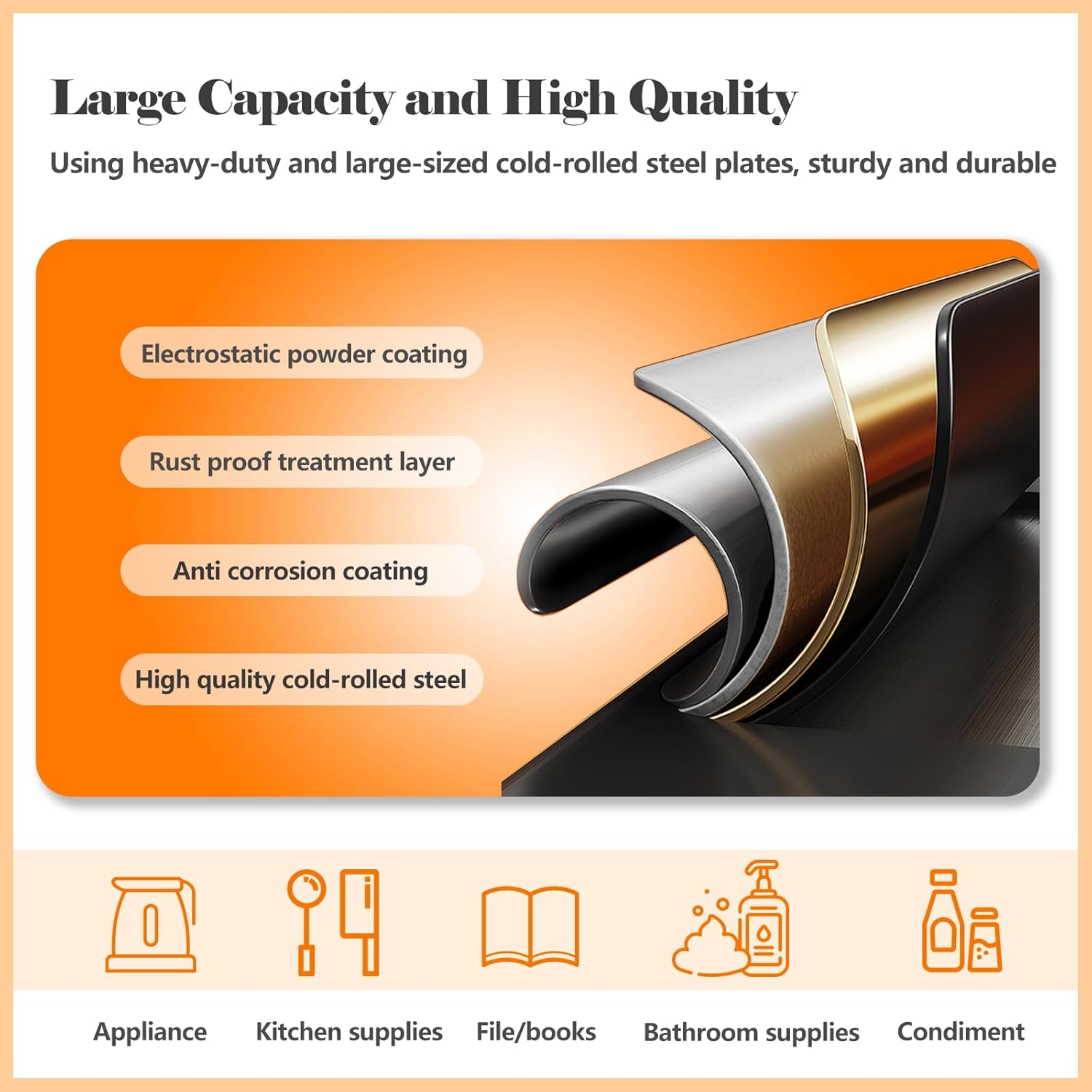 - γβHigh-quality MaterialγThe kitchen pantry storage cabinet is made of large-sized thickened cold-rolled steel plates, each shelf can withstand a weight of 180 LBS, and the reinforced structure makes the steel pantry more sturdy and durable. The freestanding 6 tier pantry adopts textured electrostatic powder spraying technology, which is scratch resistant, wear-resistant, and easy to clean, ensures food storage