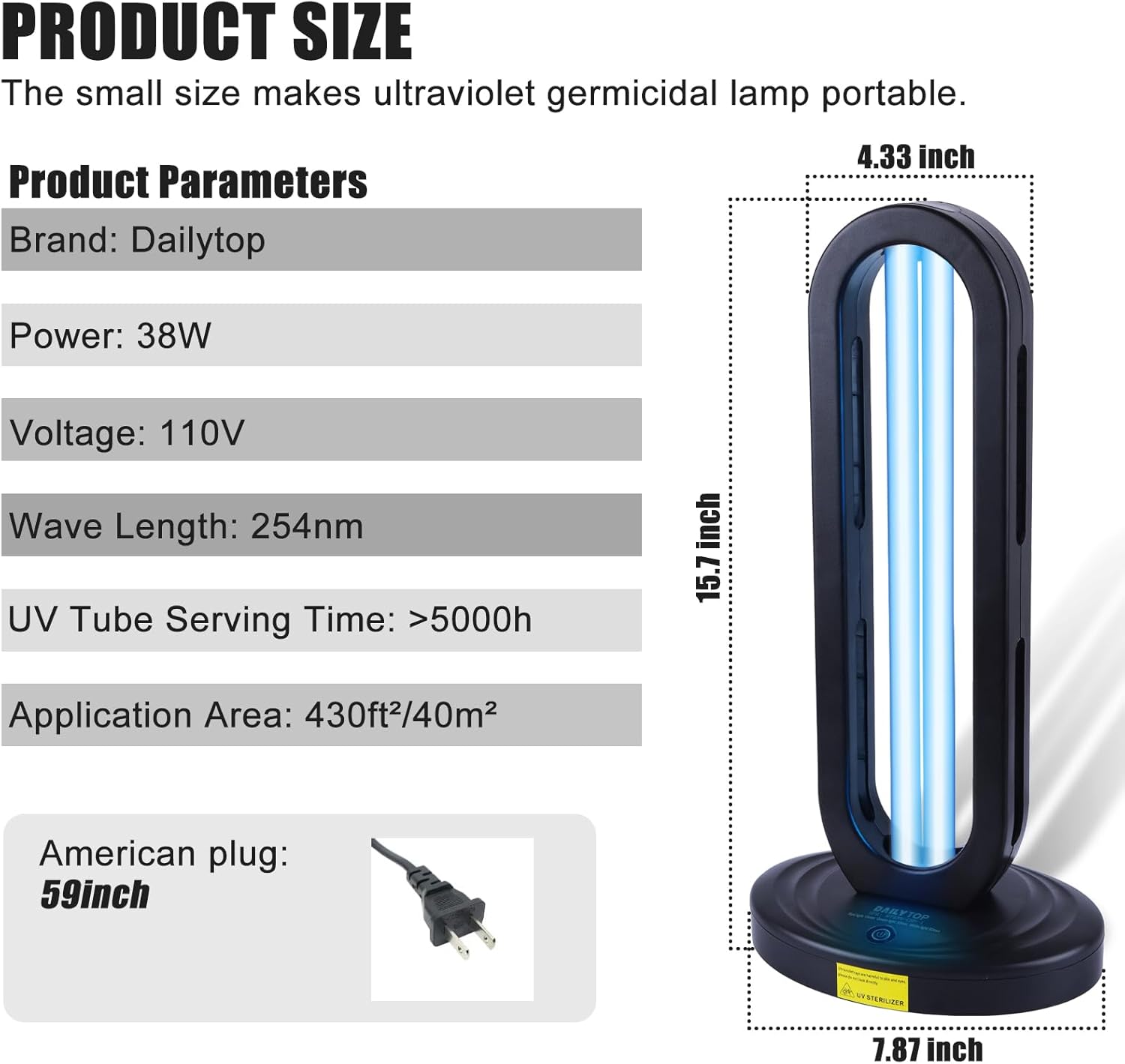 - ✅Set & Forget Simplicity with 3 Smart Timers: 15 min - Compact spaces (bathrooms, sinks), 30 min - Mid-sized areas (bedrooms, kitchens), 60 min-specific room types (living rooms, offices), can be controlled through remote or manual button operation Automatically turn off after scheduled termination to Prevents overexposure to UV-C/ozone. Turn on the timer Activate before leaving, return to fresher air.