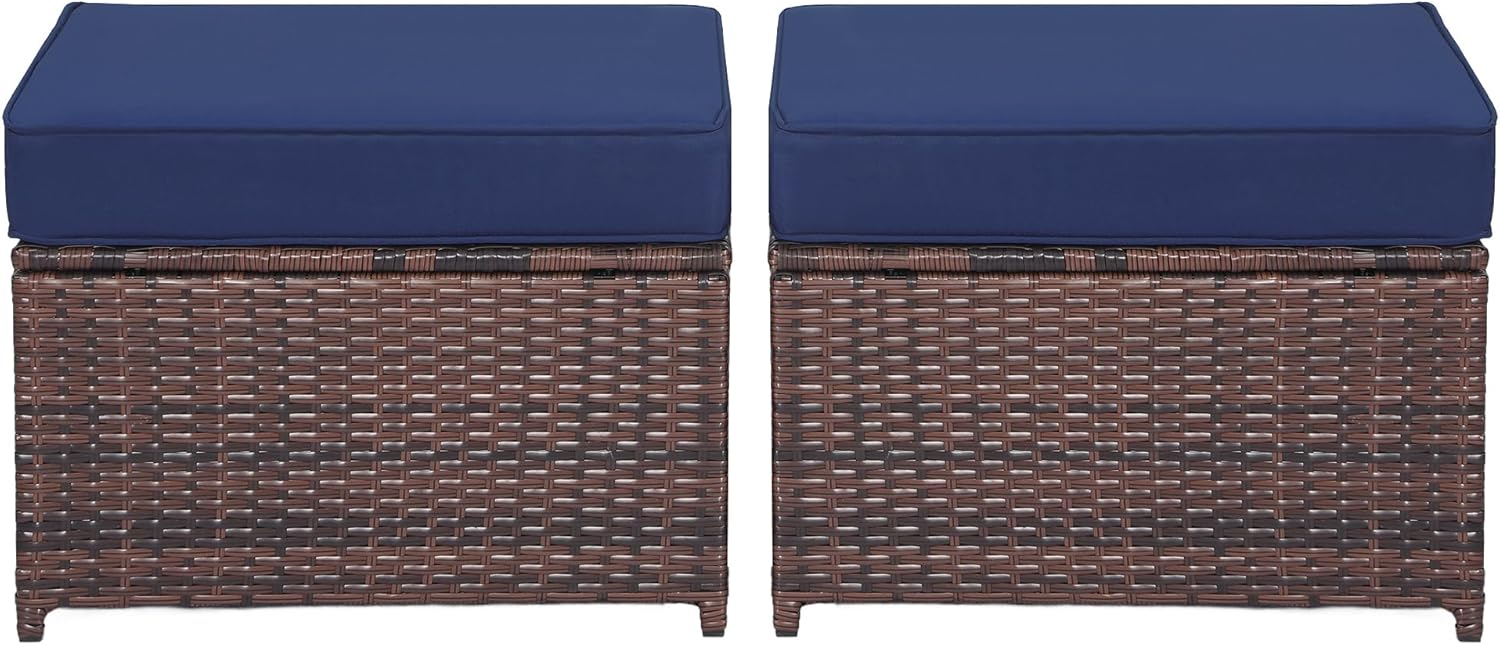 - VERSATILE DESIGN: Outdoor ottoman with removable navy blue cushion, perfect for use as a footstool or extra seating in patio, poolside, and garden settings