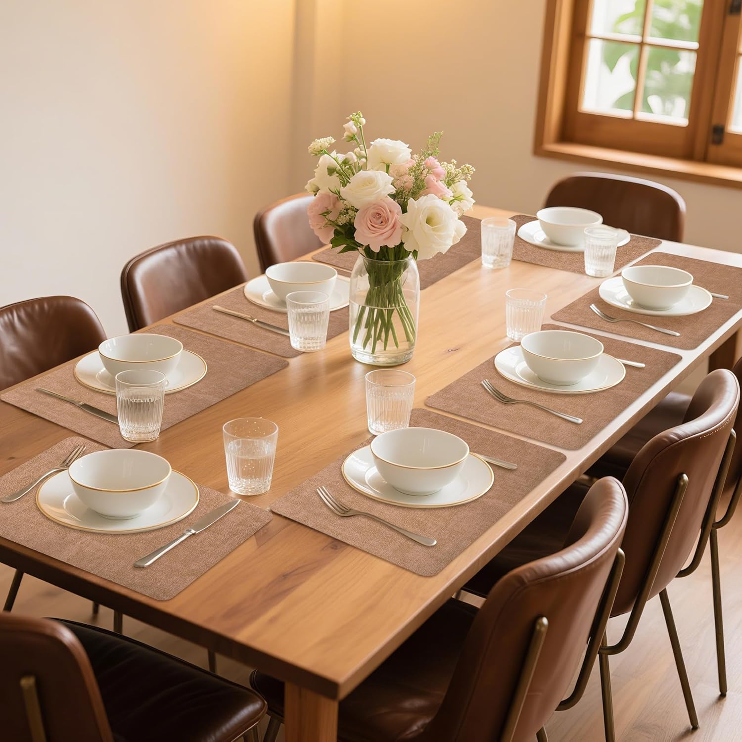 Maxpearl 8-Piece PU Leather Placemats – Durable, Heat Resistant & Wipeable Table Mats, Non-Slip and Waterproof Dining Place Mats for Kitchen or Patio Table, 17x12 Inches, Brown