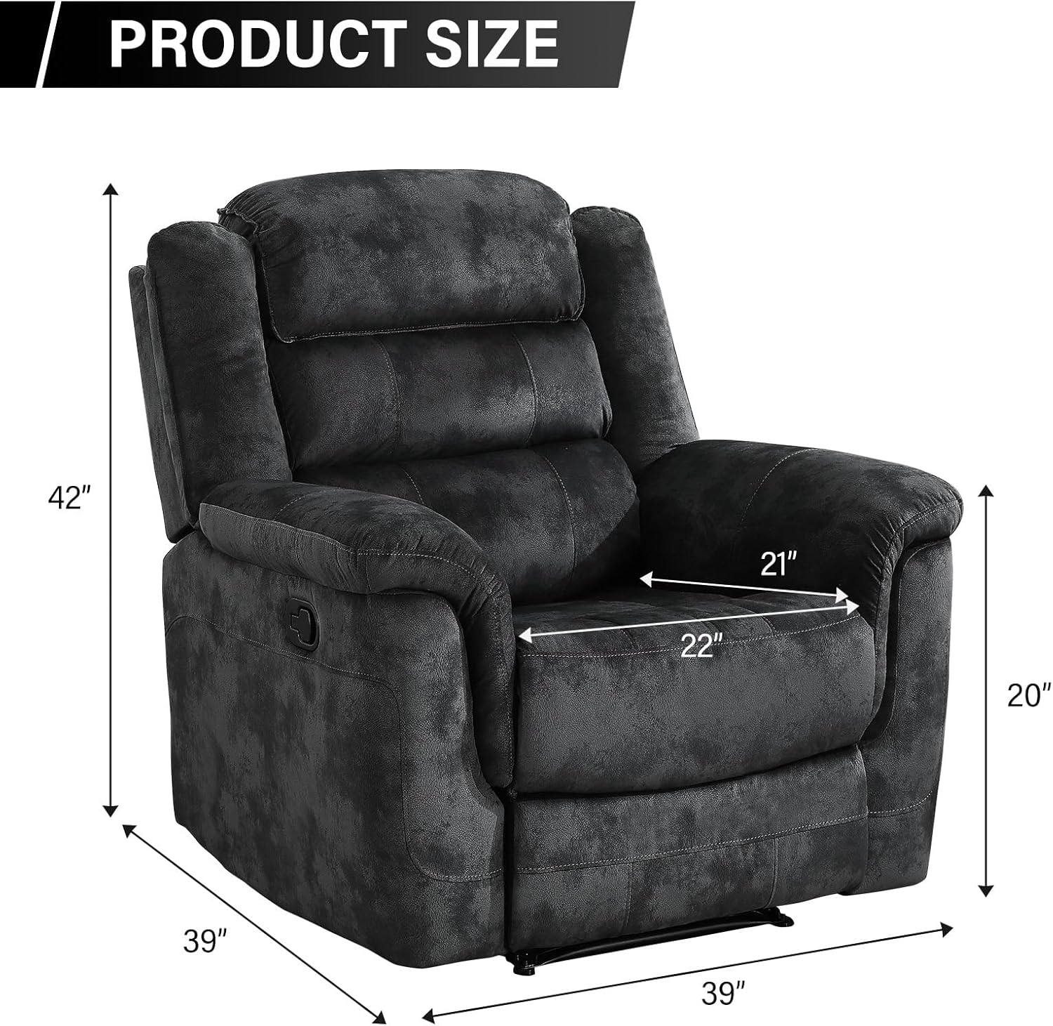 - Overstuffed Comfort: Features generously padded armrests and a cushioned backrest for full-body support. Sink into plush comfort that relieves daily stress and enhances your lounging experience with soft fabric recliner