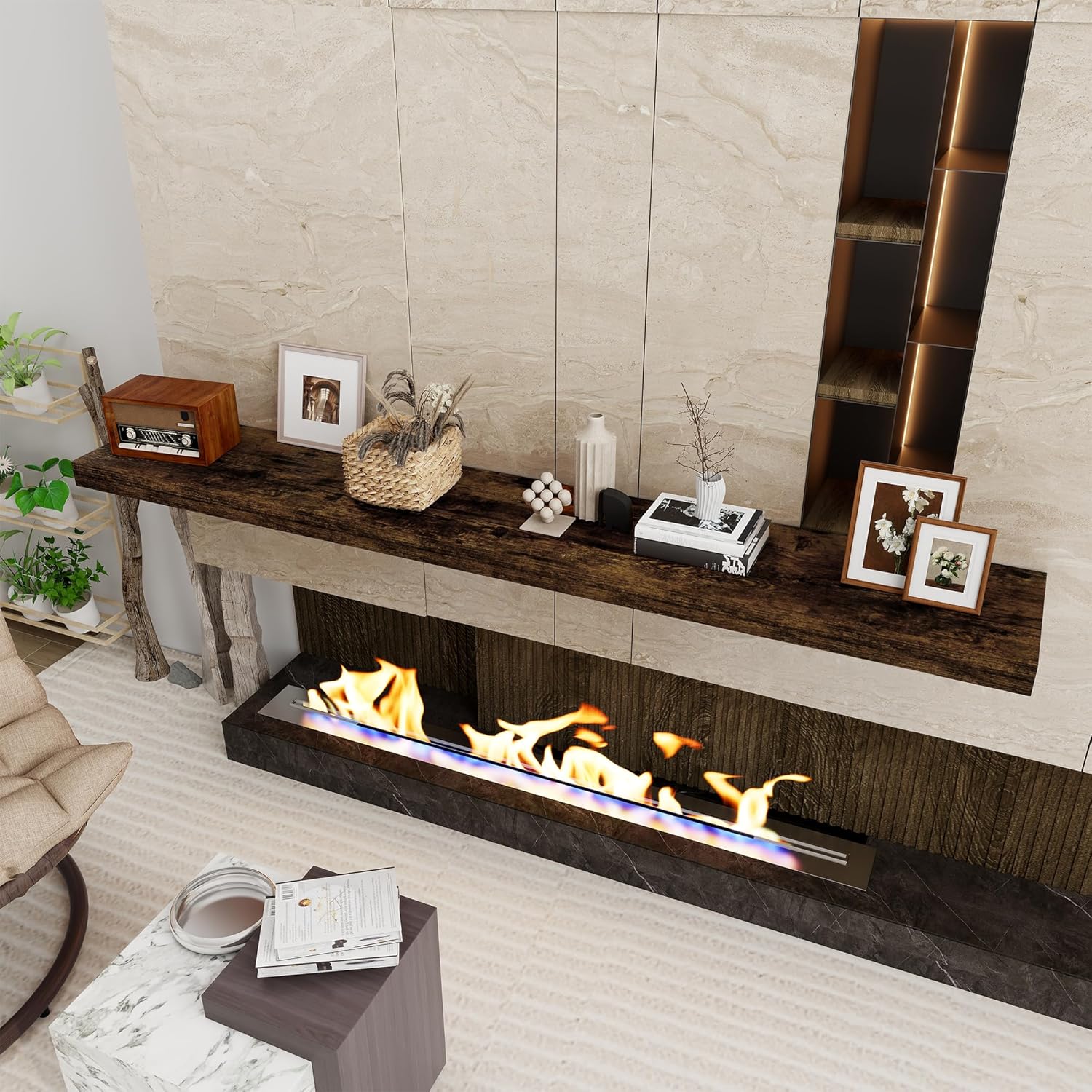 Fun Memories 72 Inch Floating Shelf, 12 Inch Deep Wall Shelf for Fireplace Mantel, Deep Storage Shelves for Home & Office, Wall Shelves with Invisible Bracket, Rustic Brown, Set of 1