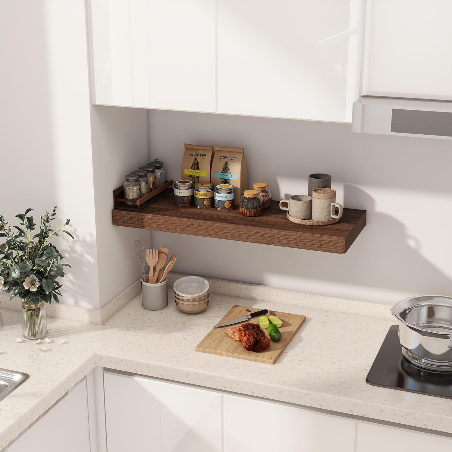 Floating Shelves 30 Inch Long, 12 Inch Deep Floating Shelf for Books, Rustic Wood 30 x 12 Storage Shelves for Wall Storage & Display, Thicked Wall Shelf for Kitchen, Living Room, Walnut Color, 1 Pack