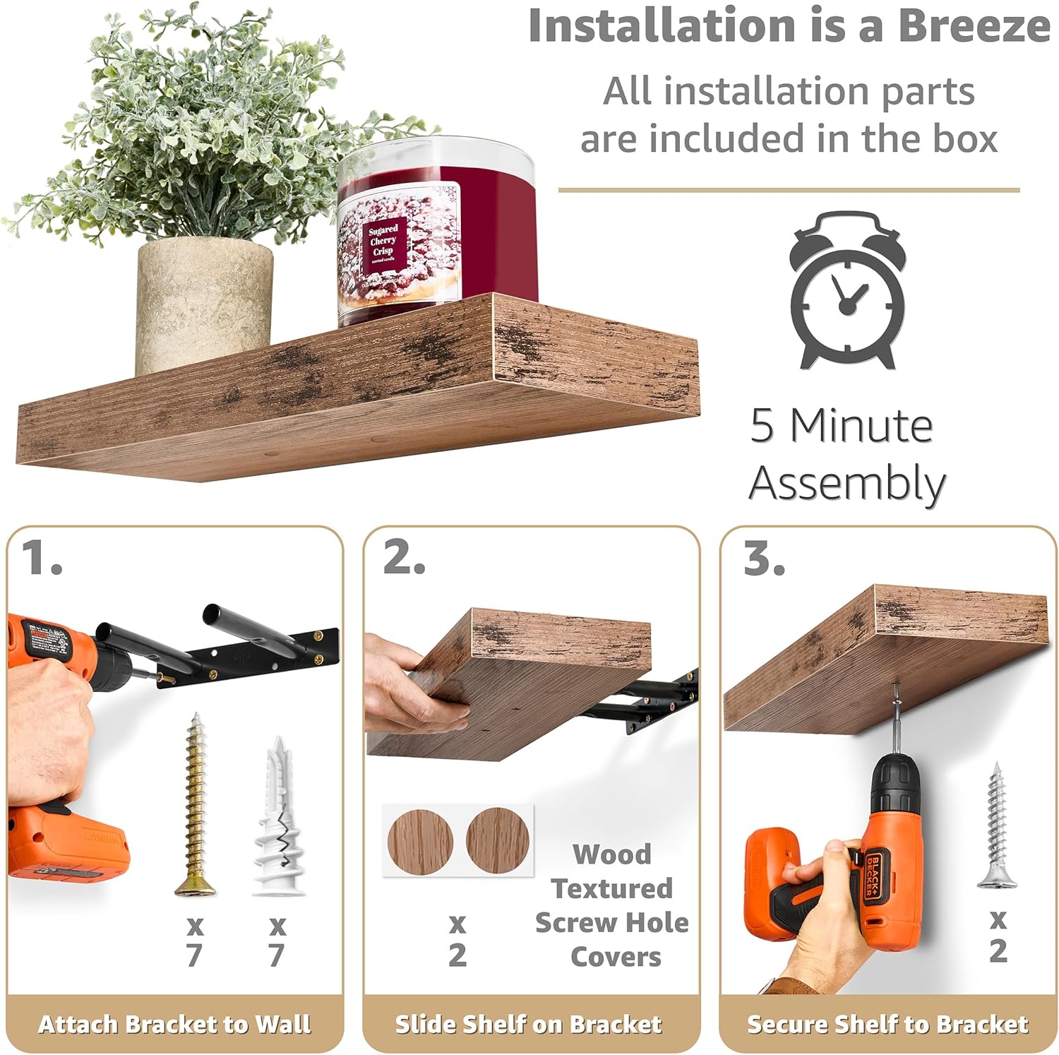 - Easy Installation: Mounting hardware INCLUDED the Hanging shelves are made of beautiful MDF with PVC + Bracket - Sturdy enough to arrange and display your favorite small objects - Attaches firmly to the wall without visible support - Minor assembly required - Supports up to 22 pounds per shelf - Measures approximately 16.25 inch L x 5.50 inch W - Each display shelf 1.5 inch thick
