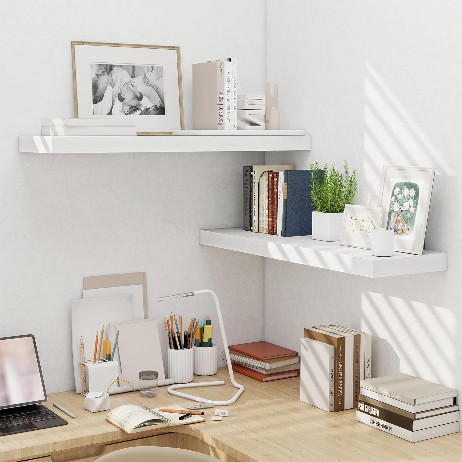 - VERSATILE WALL SHELVES: This 10 inches floating shelf is a versatile solution for any room in your home. Whether used in the living room, bedroom, office, or kitchen, it can be styled to suit various purposes, from displaying art to organizing everyday items. Perfect for enhancing any decor