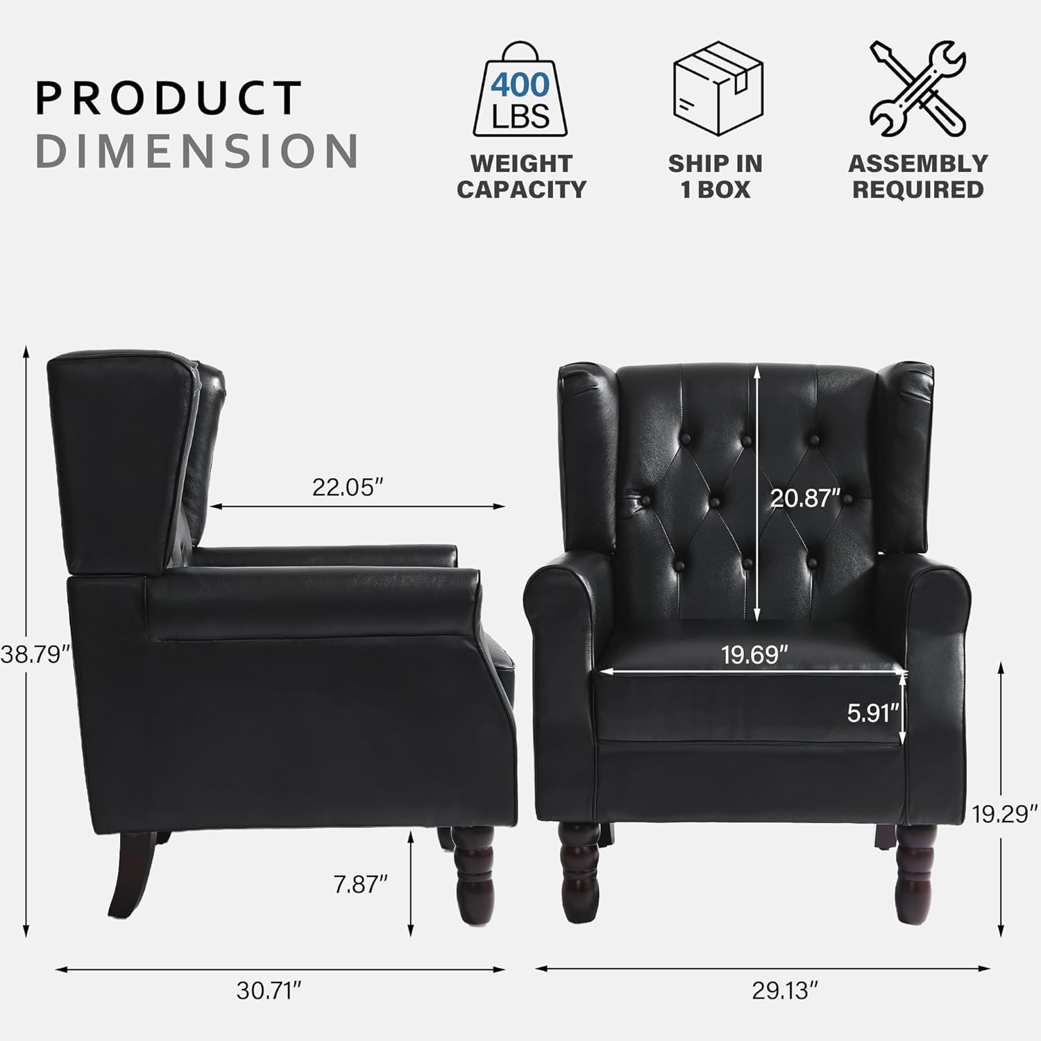 High Back Accent Chair,Upholstered Faux Leather Wingback Armchair with Solid Wood Legs for Small Spaces,Comfy Single Sofa Chair for Living Room,Bedroom,Office-Black