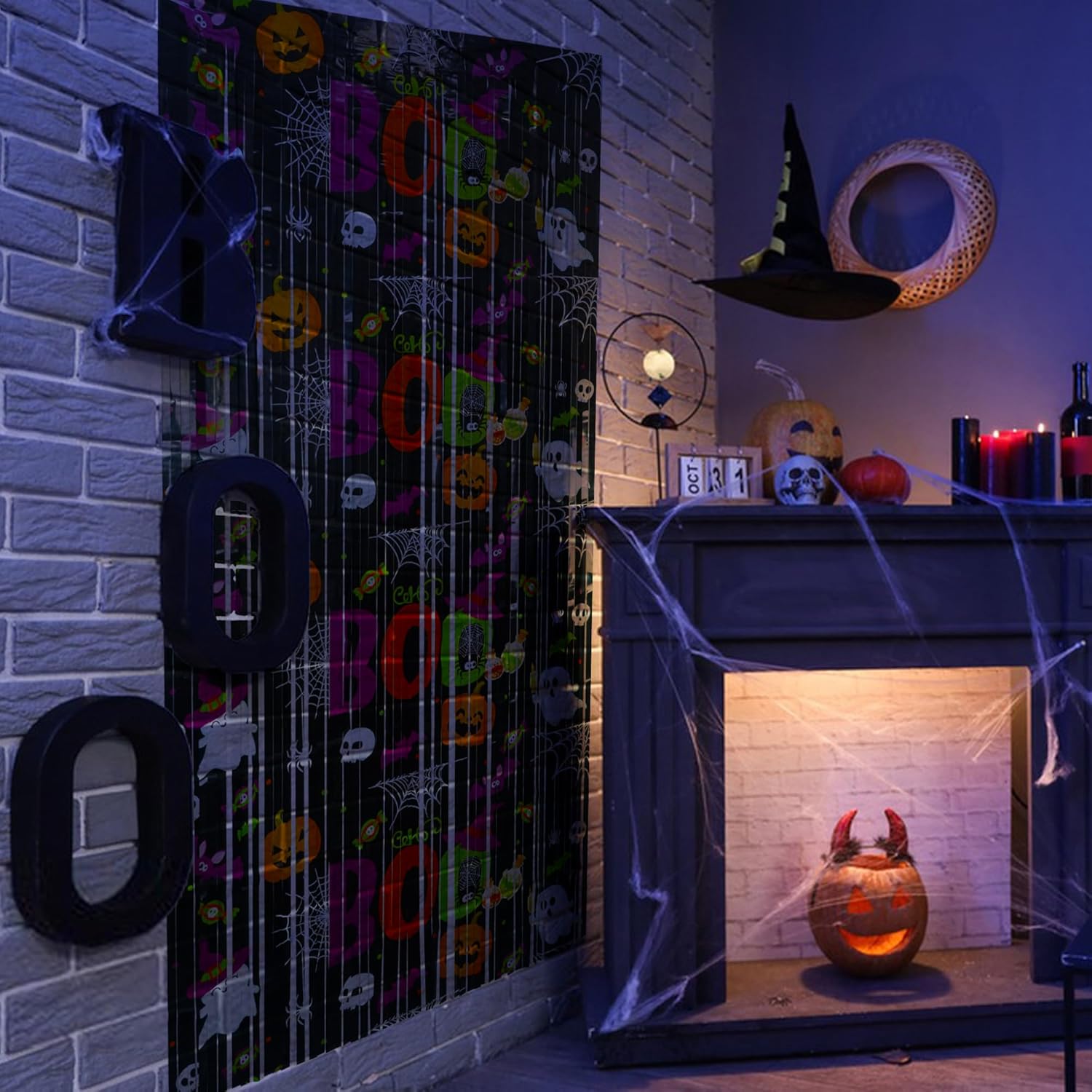 Boo Theme Streamers Party Backdrop - GREATRIL Halloween Decorations Backdrop for Wall Doorway Birthdays - 2 Packs