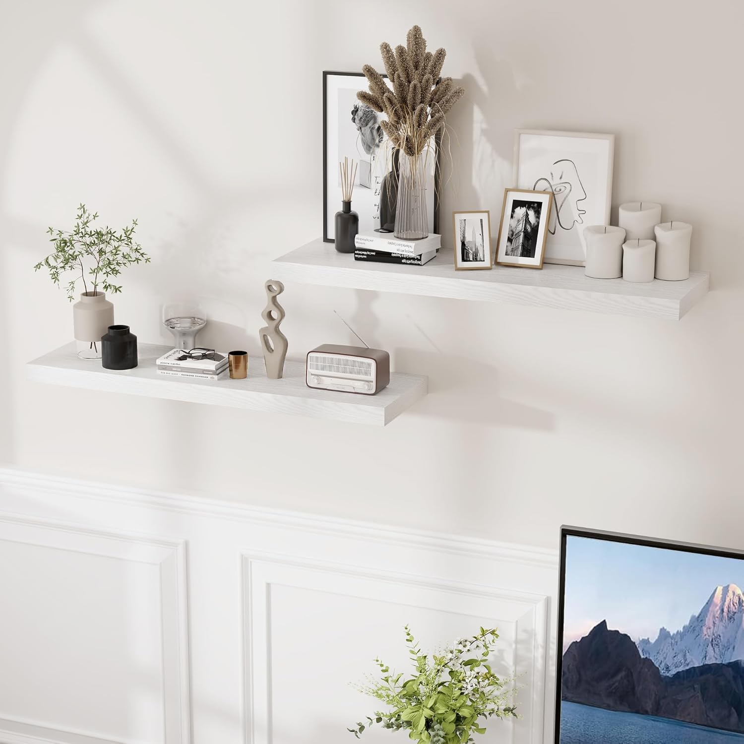 Fun Memories White Floating Shelves 36 Inch Long, 9 Inch Deep Wall Shelves Set of 2, 36 x 9 Floating Shelf for Wall, Rustic Wood Floating Shelves for Kitchen, Living Room, Bedroom