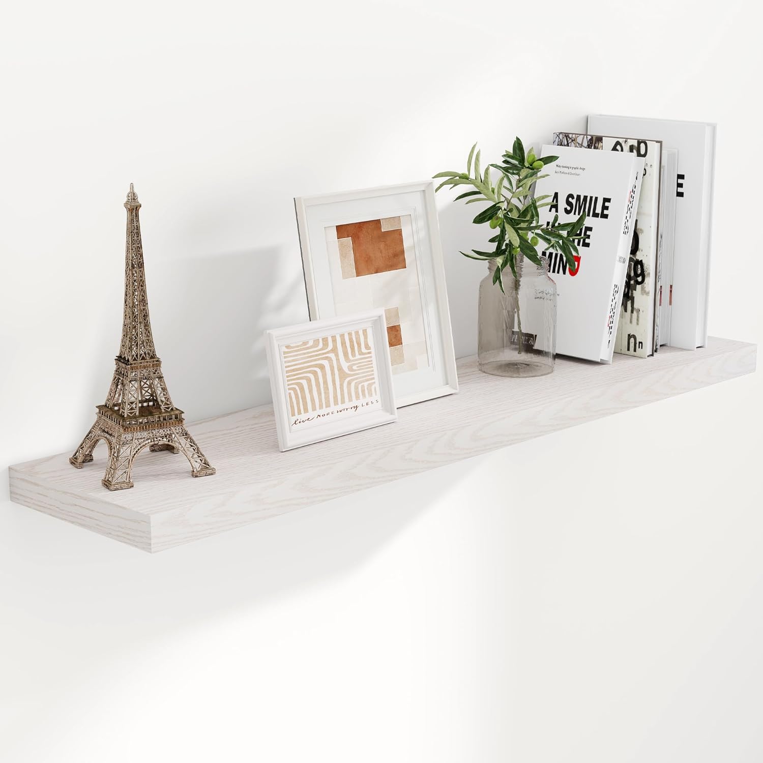 - 【DECORATIVE & FUNCTIONAL】The wall-mounted floating shelves are designed for decoration and storage, utilizing and decorating any space in your home. Used as shelf decor to show your collection, books, or prize, the hanging shelves are perfect for displaying your photo frame, small plants, model, or audio in your living room, office, study. And can also use as over the toilet storage shelf in the bathroom to hold toiletries or used as kitchen shelf to storage condiments.