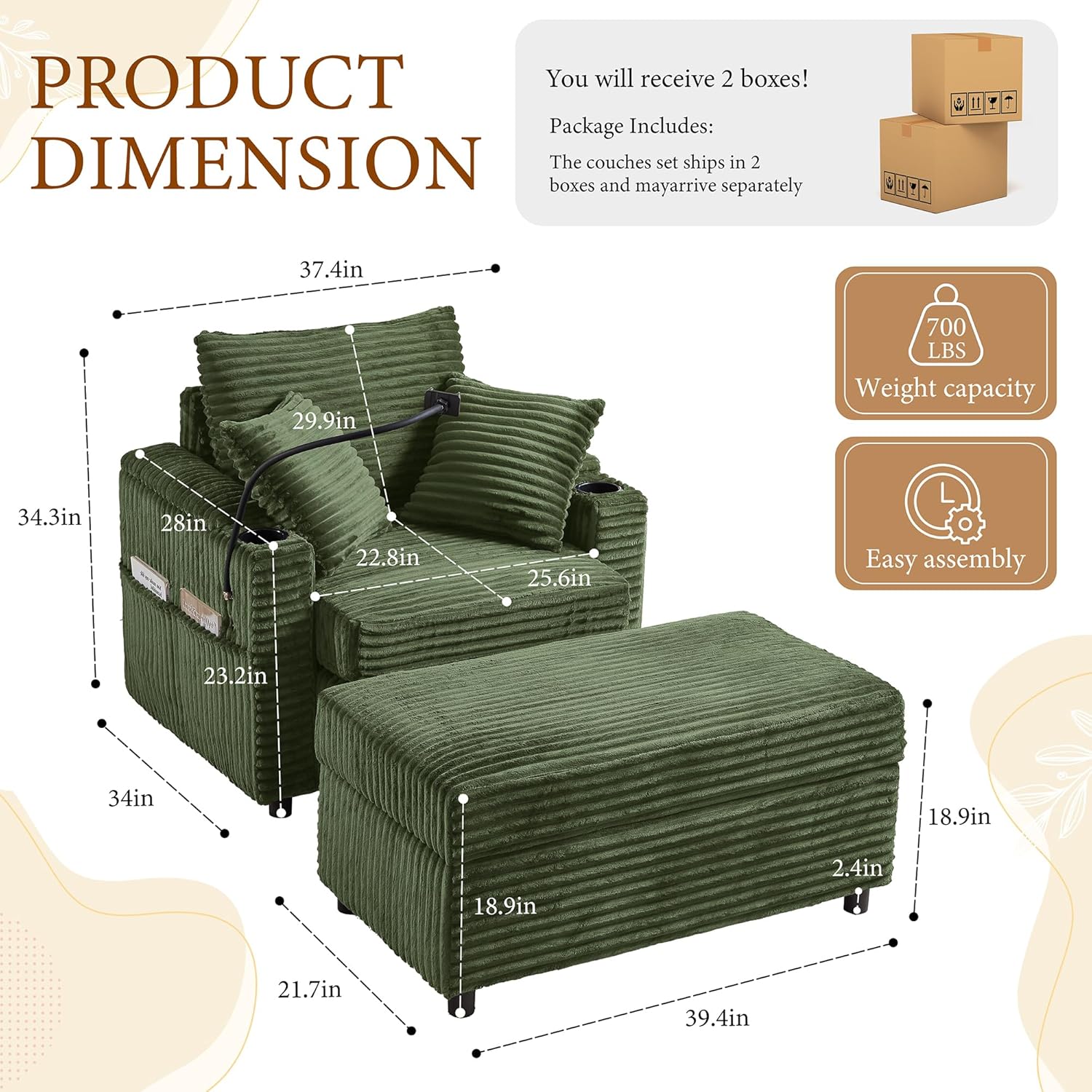 - Versatile Movable Ottoman — Lounge Chair Indoor with Hidden Storage: The movable ottoman lets you customize your comfort—use it as a footrest, a chaise lounge, or even a small table. Plus, it features hidden storage, so your essentials stay organized and close by, ideal for any lounge chair indoor setup.