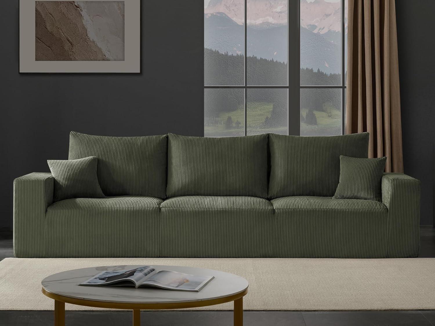 Boneless Cloud Couch Sofa for Living Room, 112" 3 Seater Green Modern Lounge Sleeper Couch, No Assemble, Cordury Compression Upholstered Couches