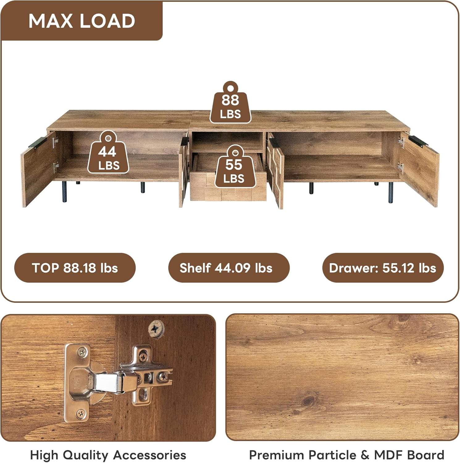 - Fits TVs up to 85 Inches – With an expansive surface measuring over 78 inches wide, this entertainment center comfortably supports flat-screen TVs up to 85", making it the perfect centerpiece for your home theater setup.