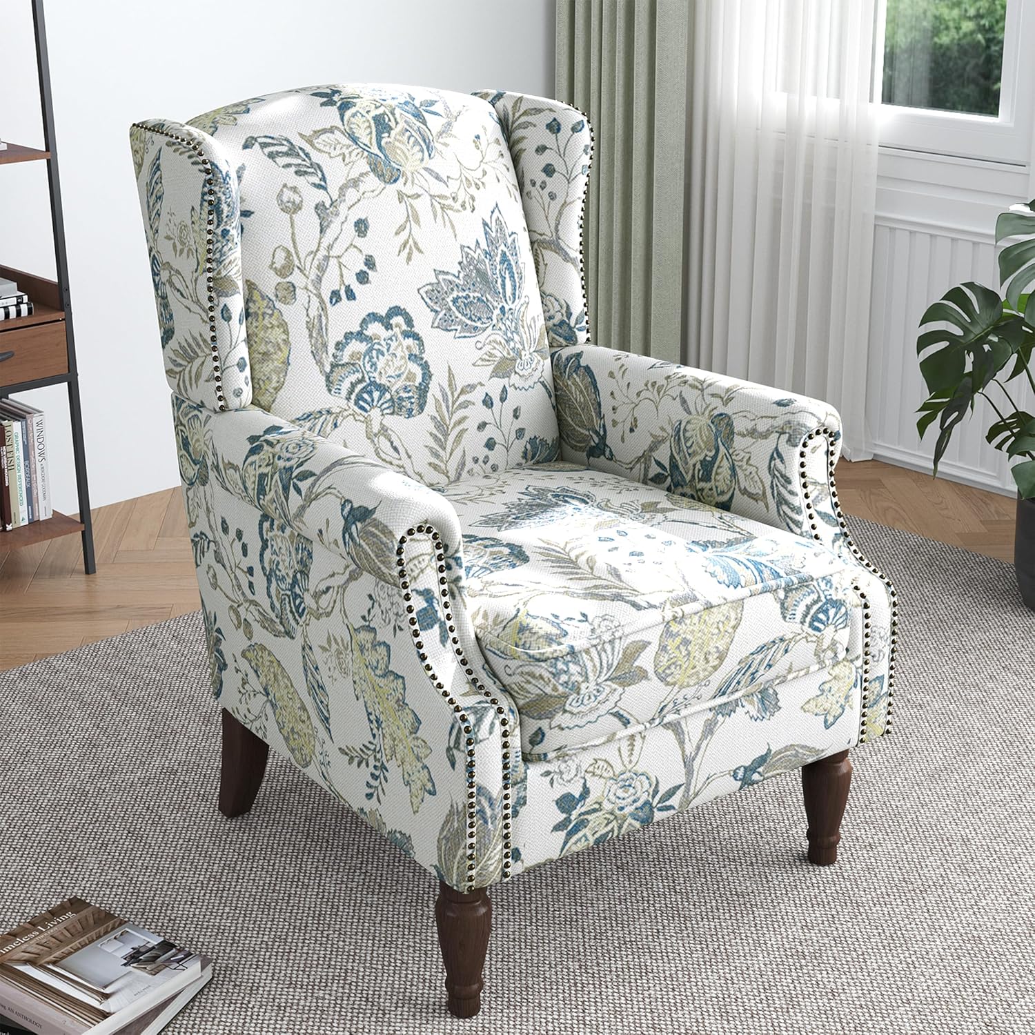 - Modern Design:This mid-century modern pushback chair features a classic wingback design with a floral and bird pattern on the fabric that adds a more upscale touch to the decor for visual enjoyment! Place it in your studio to enhance office comfort; by the fireplace for casual holiday time; or in your bedroom for cozy lounging.