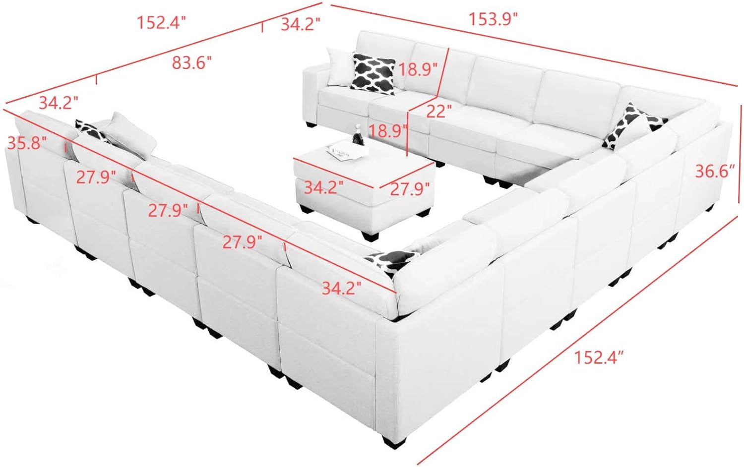 - 【Ergonomic Design】The backrest of the couches for living room perfectly fits the human body curve, the armrests are wide and at the right height, and the living room sofa as a whole is ergonomically designed to give you comfortable support. The modular sectional sofa is paired with multiple multi-functional small pillows, allowing you to relax anytime, anywhere. The oversized couch has a weight capacity of up to 660 pounds to give you stable support.