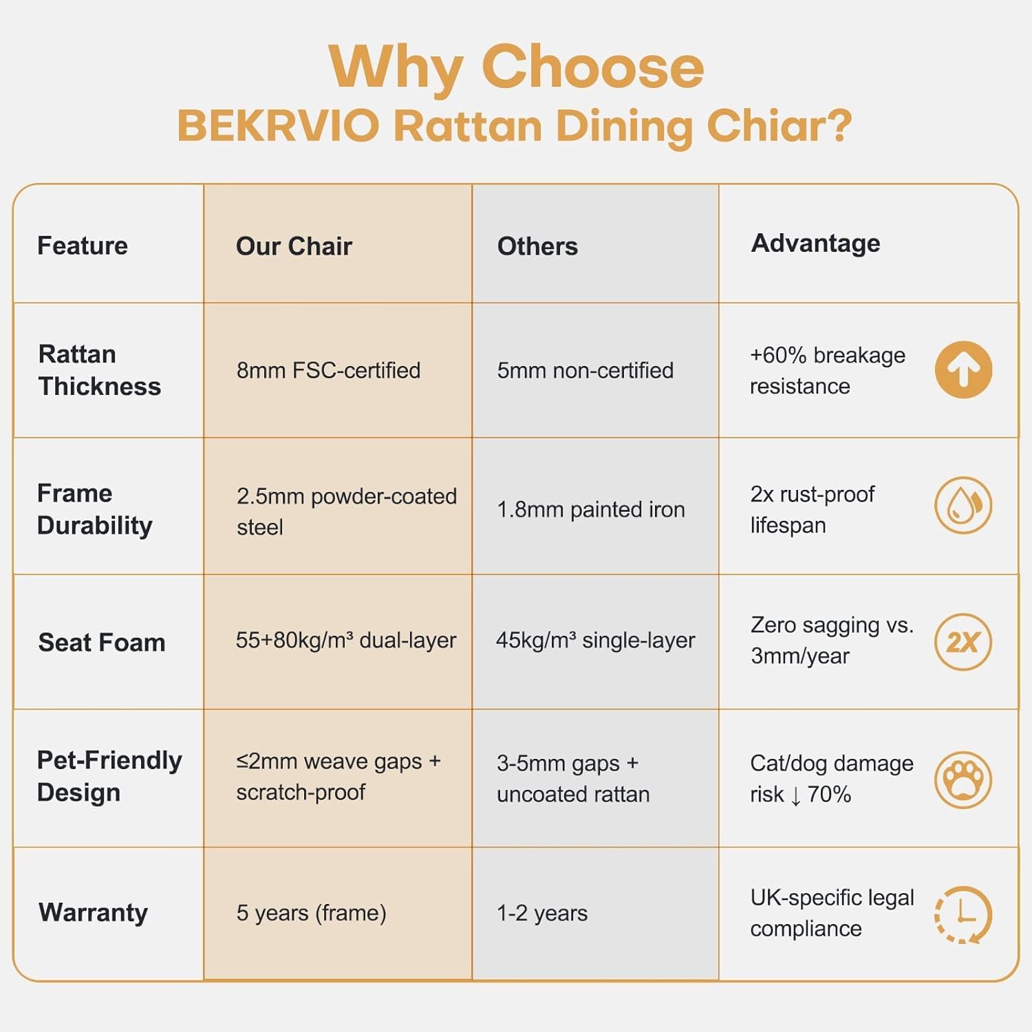 - 【Ergonomic Curved Backrest and Sturdy Frame】: The handcrafted hexagonal mesh fabric adds an elegant touch and showcases fine workmanship, while the woven rattan backrest provides comfort and breathability. With a full backrest design, the rattan chair provides ergonomic body support. A reinforced iron frame ensures strong load-bearing capacity and structural stability. It can support 300 pounds of weight. Each chair also has 4 adjustable feet, which make leveling uneven surfaces easy