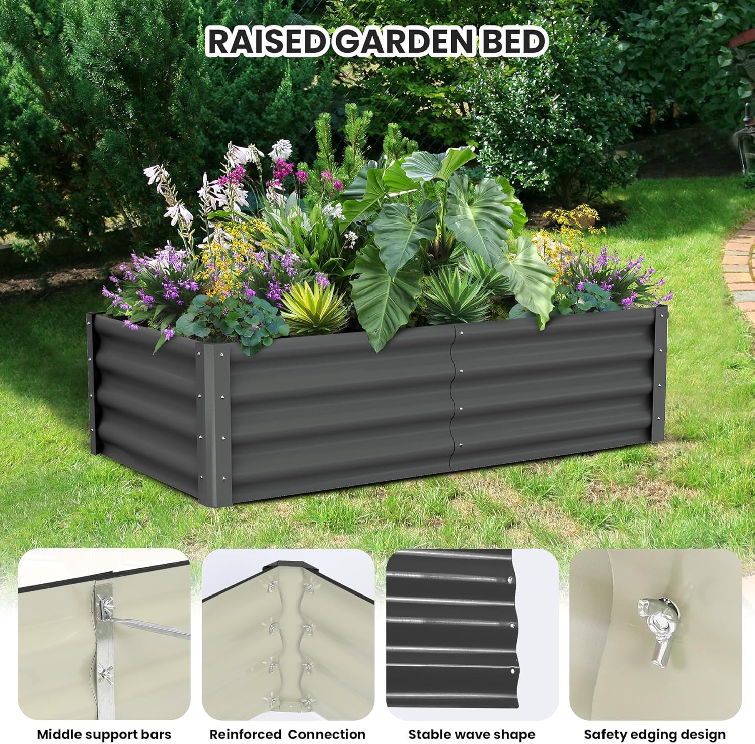 - UPGRADED QUALITY AND CONSTRUCTION: This outdoor raised garden bed is made of durable galvanized metal with double anti-corrosion protection. The rectangular structure design is beautiful and elegant, and the interface can withstand high pressure to ensure that it will not loosen in the long term