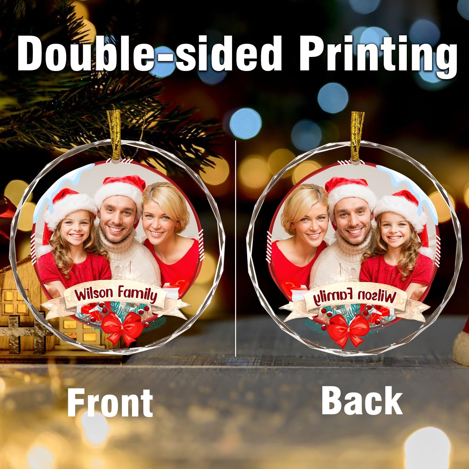 - 🎄Personalized Crystal Photo Ornaments --- Let your special memories live forever! You can add photo of yourself with your family, friends, or anyone close to you, along with any text you desire, to the crystal pendant, and we will customize it specifically for you.
