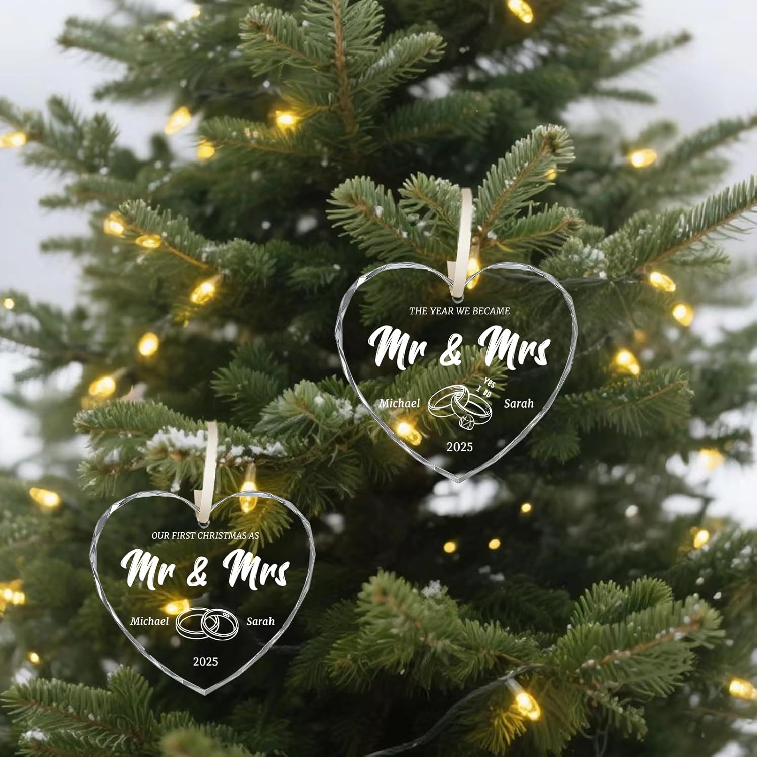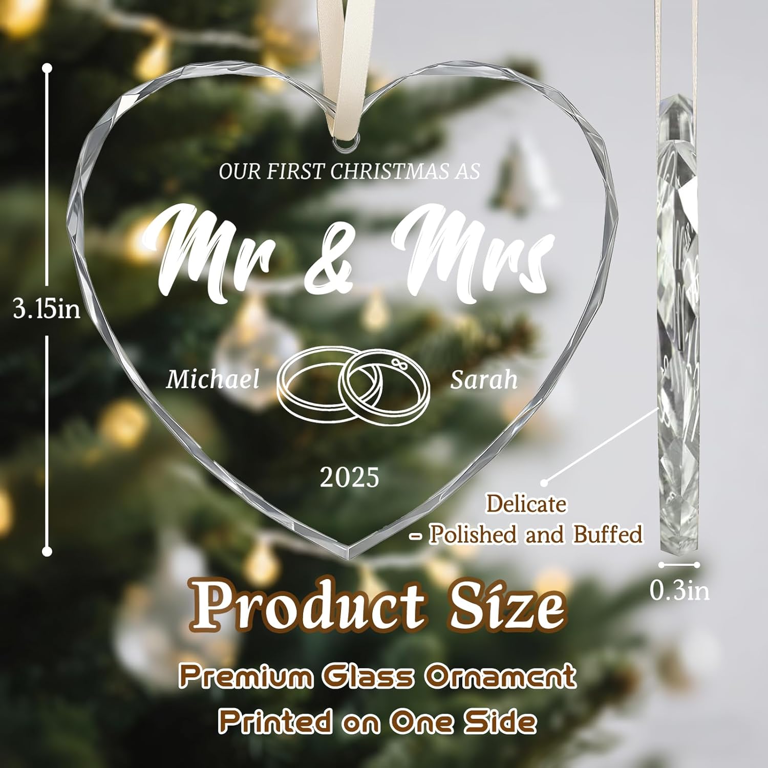 - Multi-scenario Applications: We offer a variety of exquisite designs tailored for newlyweds, including mr and mrs sign, just married decorations, and romantic anniversary editions to suit diverse preferences and occasions. Select the perfect design for your dearest friends, transforming this ornament into a unique vessel for your personalized, heartfelt wishesβa truly meaningful wedding gift for newlyweds. The personalized wedding shower glass ornament doubles as festive decor for Christmas trees, everyday accents for windowsills or doorways, or as a standout piece for wedding venues and bridal showers, effortlessly enhancing any setting