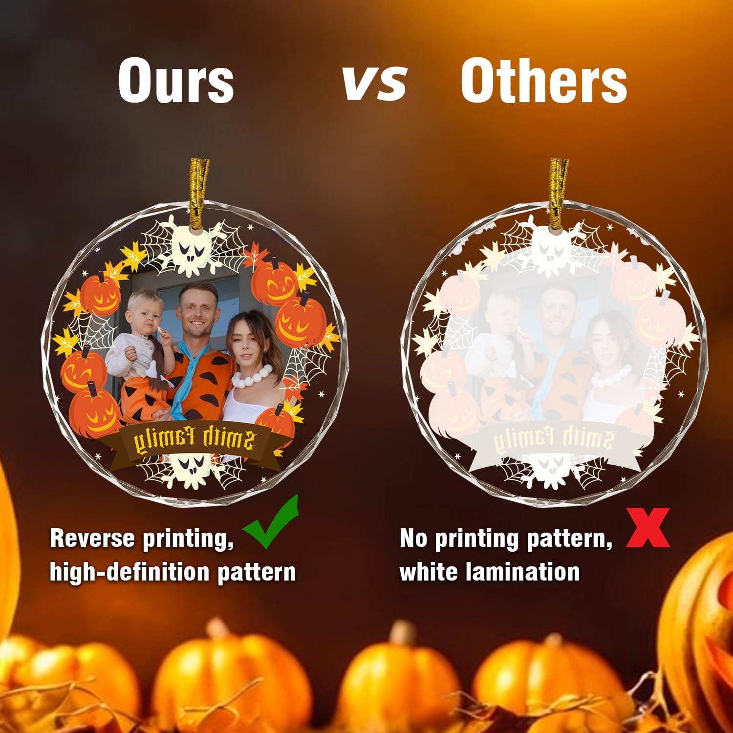 - 🕷️Unique Double-sided Printing --- Ordinary crystal pendants are printed on one side, with only one side having your customized photo and text. Our crystal pendants are printed on both sides, with patterns and text no matter which side you look at them from.